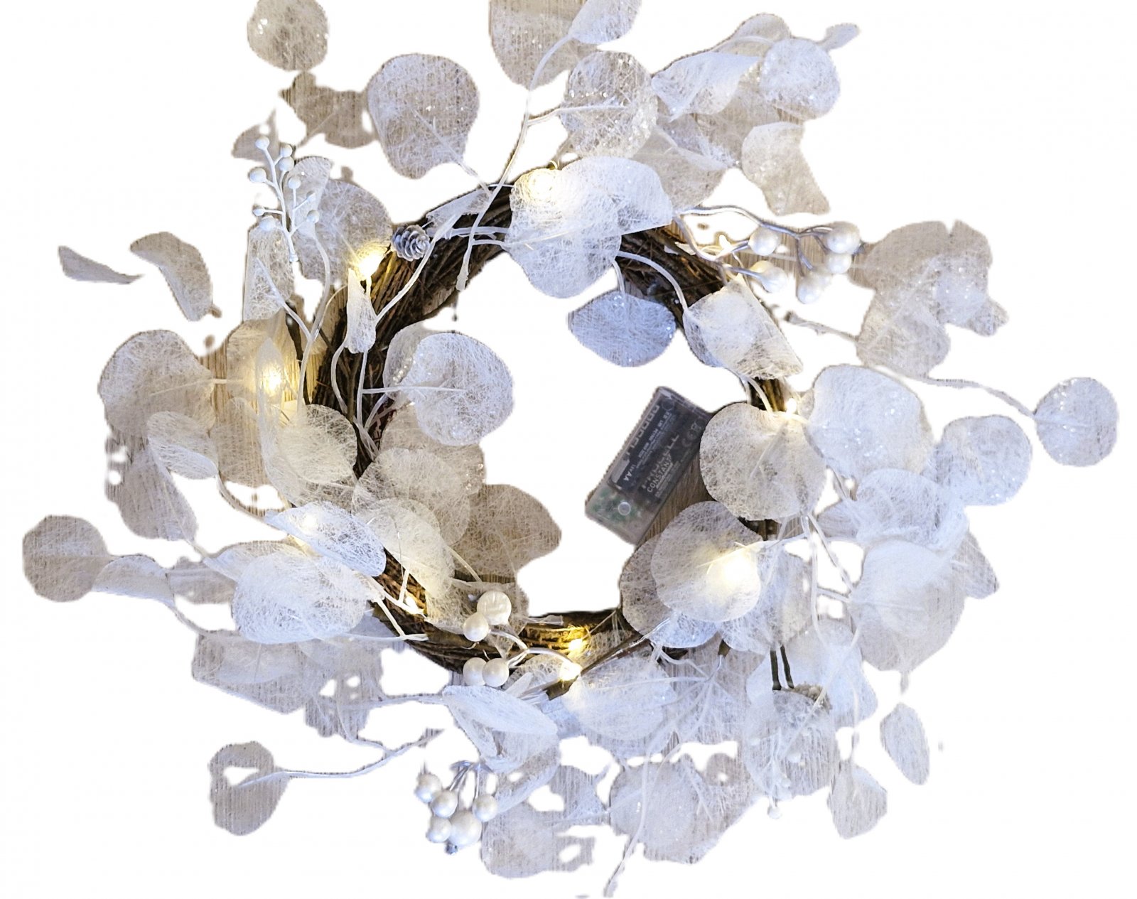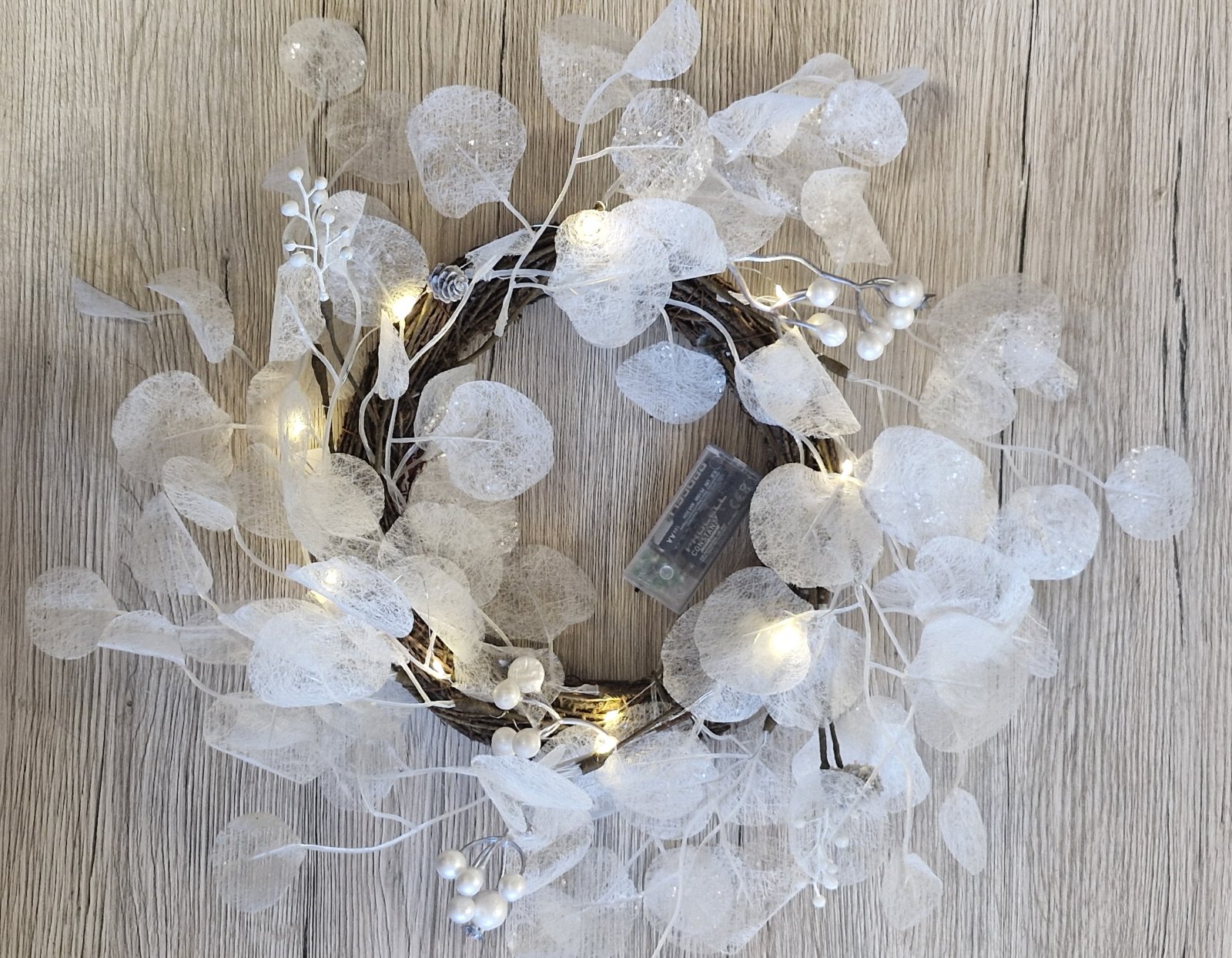 LED ZS vainags ar baltām lapiņām uz baterijām 45cm Besk silti balta .4855Preces kods:542696 Cena: 10.15 EUR skatīt vairāk |