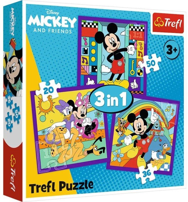 Puzle 3in1 Trefl Mickey Mouse and Friends .8941Preces kods:348941 Cena: 5.15 EUR skatīt vairāk |