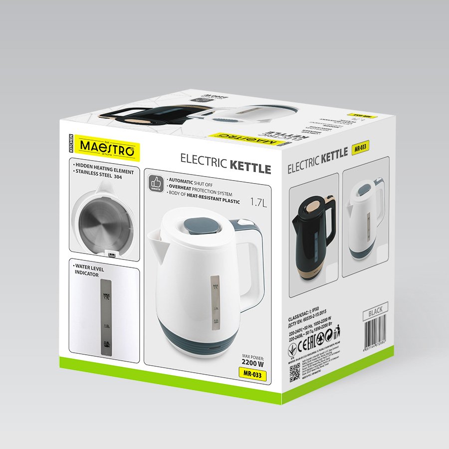 Elektriskā tējkanna 1.7l Mr-025-BLACK 220WPreces kods:326005 Cena: 26.40 EUR skatīt vairāk |