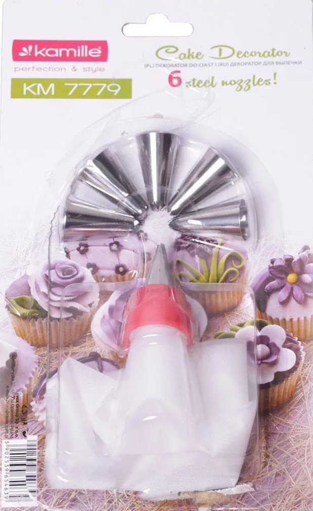 Kūku dekorējamais maisiņš ar 6 uzgaļiem "Kamille" 7779 .4639Preces kods:322703 Cena: 1.95 EUR skatīt vairāk |