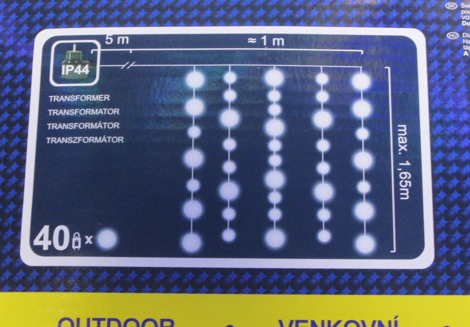 Elektriskās spuldzītes - bumbiņas 40LED aizkars h1.65/1.0m CW .3227Preces kods:54800 Cena: 16.84 EUR skatīt vairāk |